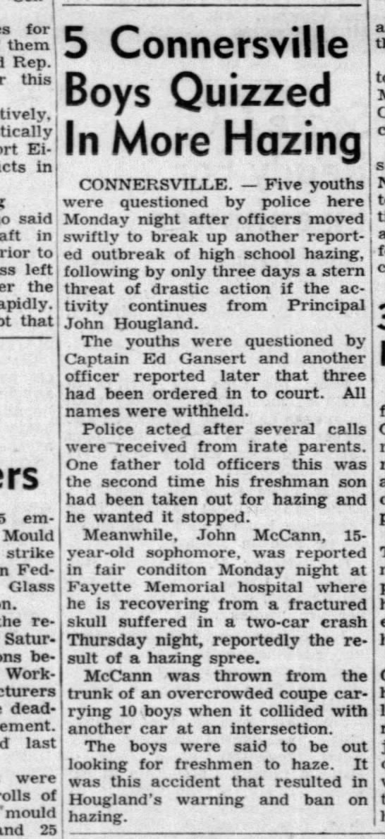 Terrible Indianapolis Star headline: “Accident Mars Hazing Party”: The hazing was fine until a car full of whooping boys cracked up? Moderator Hank Nuwer